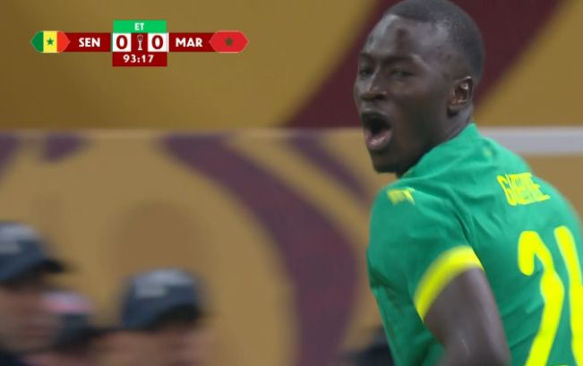 وفي الدقيقة 94 سجل باب جاي الهدف الأول لمنتخب السنغال في مرمى المغرب بطريقة رائعة وبعد تسديدة من خارج منطقة الجزاء.
