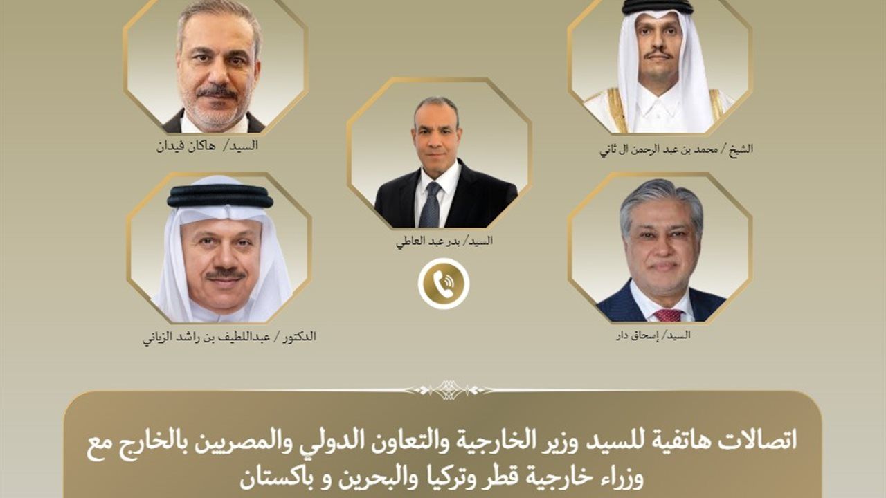 أجرى الدكتور بدر عبدالعاطي، وزير الخارجية والتعاون الدولي والمصريين بالخارج، سلسلة اتصالات هاتفية مع هاكان فيدان وزير خارجية الجمهورية التركية، ومحمد إسحاق دار نائب رئيس الوزراء وزير خارجية باكستان، والشيخ محمد بن عبدالرحمن آل ثاني رئيس مجلس الوزراء وزير الخارجية بدولة قطر الشقيقة، والدكتور عبداللطيف بن راشد الزياني وزير خارجية مملكة البحرين، لبحث التطورات الإقليمية المتسارعة وتنسيق الجهود المشتركة لتحقيق الاستقرار.