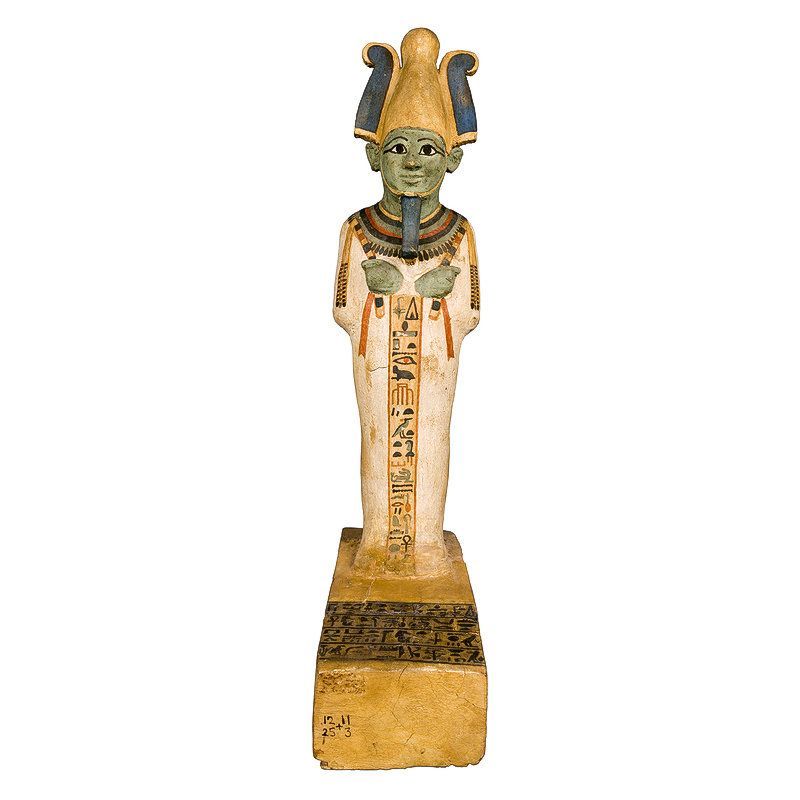 ويُظهر هذا التمثال الأثري المصنوع من الخشب، والمكتشف في منطقة الدير البحري، تمثيلاً دقيقاً لأوزيريس بخصائصه الأيقونية الفريدة، منها لونه الأخضر: حيث يظهر وجه المعبود باللون الأخضر، وهو لون يرمز في الفكر المصري إلى الخضرة وتجدد الحياة، تماماً كما ينمو الزرع من طمي النيل.