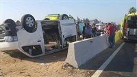تلقت غرفة عمليات النجدة، بلاغا بوقوع حادث سير، بالطريق الصحراوي في العياط، انتقلت قوة أمنية لمكان البلاغ، وتبين من خلال الفحص، انقلاب سيارة ميكروباص، إثر اختلال عجلة القيادة من يد السائق، مما أدى لإصابة 5 أشخاص.