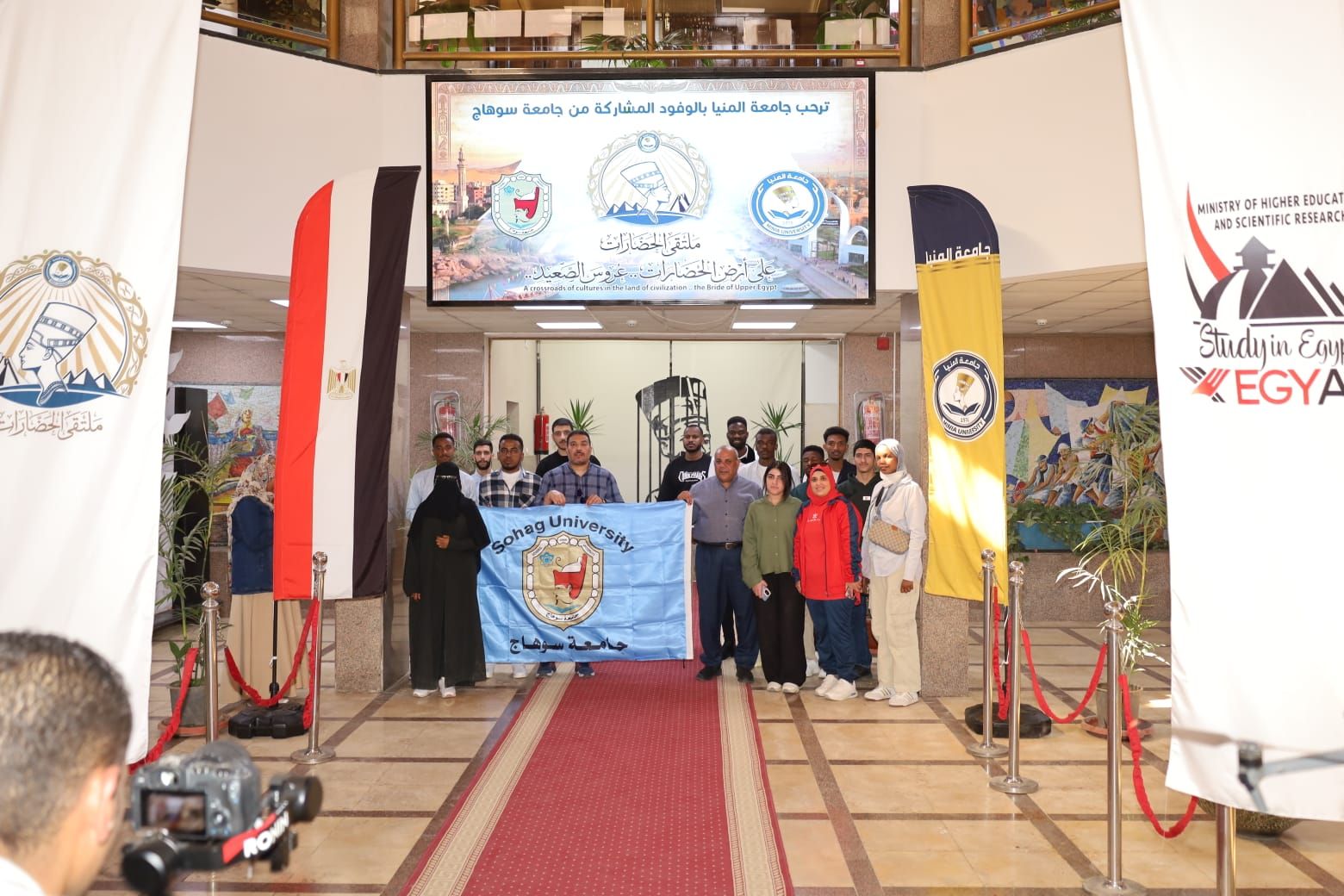 جامعة المنيا تبدأ استقبال وفود الجامعات المشاركة بـ"ملتقى الحضارات على أرض الحضارات .. عروس الصعيد" للطلاب الوافدين من 26 جنسية
