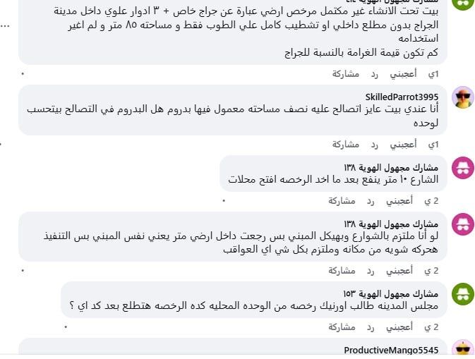 من خلال متابعة آراء المواطنين، تم رصد مجموعة من التعليقات على مجموعات منتشرة على وسائل التواصل التي توضح التحديات اليومية التي يواجهها المواطنون في تنفيذ القانون الجديد ومحاولاتهم لفهم ما هو مسموح وما هو ممنوع، وما يلزم لإتمام إجراءات التصالح بشكل صحيح.
