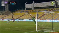 وجاءت اللحظة الحاسمة في الدقيقة التاسعة والثلاثين، عندما سجل فاخري لاكاي الهدف الأول لفريق سيراميكا بطريقة غير متوقعة، بعد تسديدة قوية من منتصف الملعب اصطدمت باليد بشكل غريب في حارس الأهلي مصطفى شوبير، قبل أن تعبر الكرة خط المرمى. الهدف شكل صدمة للمارد الأحمر، وأعاد تنظيم خطة اللعب للأهلي بعد أن كان يسيطر على الكرة في معظم الوقت.