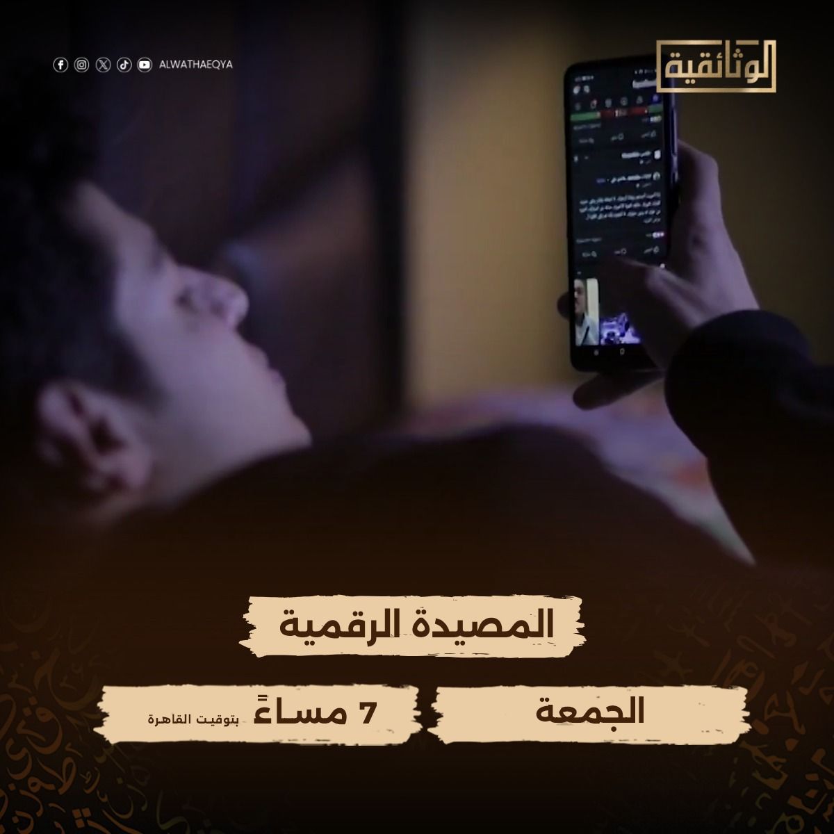 تعرض قناة «الوثائقية» في تمام الساعة السابعة مساء اليوم، الجمعة، الفيلم الوثائقي «المصيدة الرقمية»، الذي يتناول خطورة مواقع التواصل الاجتماعي وكيف تسهم في خلق مشكلات متعددة على المستويات النفسية والاجتماعية والأمنية.