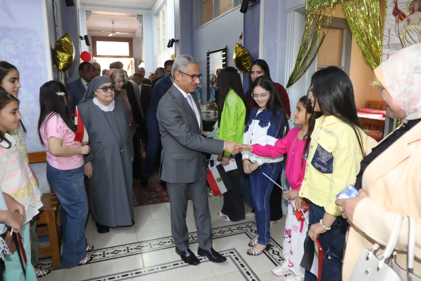 محافظ بني سويف يشارك أطفال دار "صديقات الكتاب المقدس" فرحتهم بعيد القيامة المجيد
