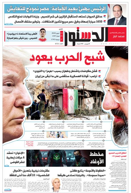 تصدر جريدة «الدستور» في عددها المرتقب غدًا الإثنين حزمة من الملفات والتحقيقات الخاصة التي ترصد أبرز القضايا الإقليمية والمجتمعية، مع تركيز لافت على تطورات المشهد السياسي والاقتصادي، إلى جانب الاستعدادات للمناسبات الدينية والموسمية في مصر.