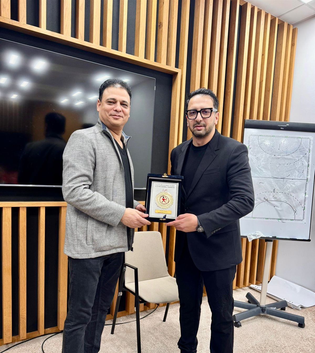وكان في استقبال السفير، الدكتور عمرو العدل، عضو مجلس إدارة الاتحاد المصري لكرة اليد ورئيس البعثة، حيث رحّب بالزيارة التي تعكس اهتمام الدولة المصرية بأبنائها في المحافل الدولية، وقام بإهدائه درع الاتحاد تقديرًا لدعمه ومساندته للمنتخب.