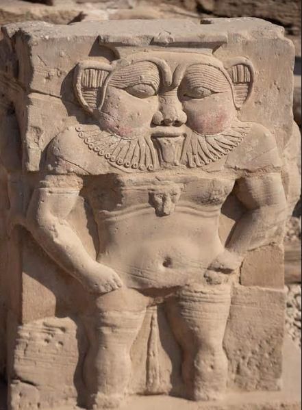 وربما كانت هيئته الساخرة هذه، سببًا في ضحك الأطفال في مصر القديمة، فكان يدخل السرور على قلب كل فرد وكانوا يصورونه على اللوحات الحجرية والأواني والتمائم والمعابد وعلى تيجان أعمدة بيت الولادة، أنه إله خير يقي النساء في ساعة الولادة من كل ما يسبب لهن الأذى، وكان يعمل على تزويج العوانس.