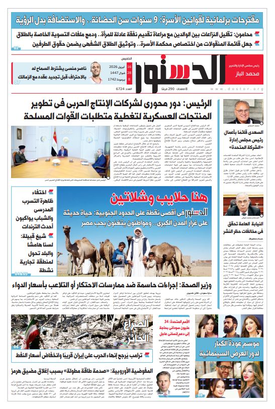 يضم عدد جريدة «الدستور» الصادر غدًا الخميس باقة من أهم الموضوعات والملفات التي تعكس تطورات المشهدين المحلي والدولي، مع تركيز خاص على القضايا الاقتصادية والاستراتيجية التي تمس المواطن بشكل مباشر، إلى جانب متابعة دقيقة لتداعيات الأزمات العالمية.