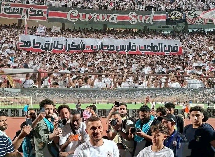 وشهدت اللحظة تفاعلًا كبيرًا من الجماهير التي حرصت على تحية طارق حامد تقديرًا لمسيرته الطويلة مع الفريق، قبل أن يعلن نهاية مشواره في الملاعب بشكل رسمي.