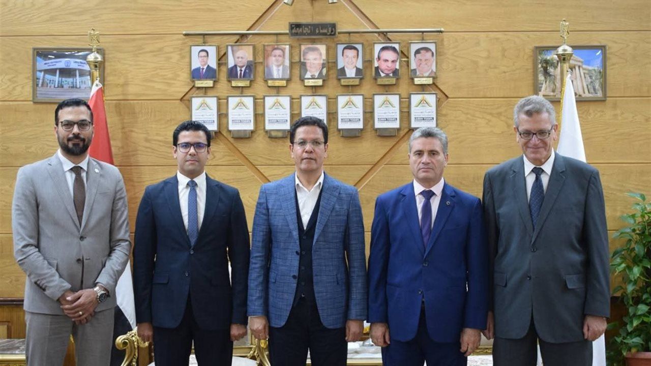 شهد الدكتور ناصر الجيزاوي رئيس جامعة بنها والدكتور طه عاشور نائب رئيس الجامعة لشئون خدمة المجتمع وتنمية البيئة والدكتور إسلام رجب نائب محافظ مطروح توقيع بروتوكول تعاون بين كلية الطب البشري بالجامعة ومديرية الشئون الصحية بمطروح.