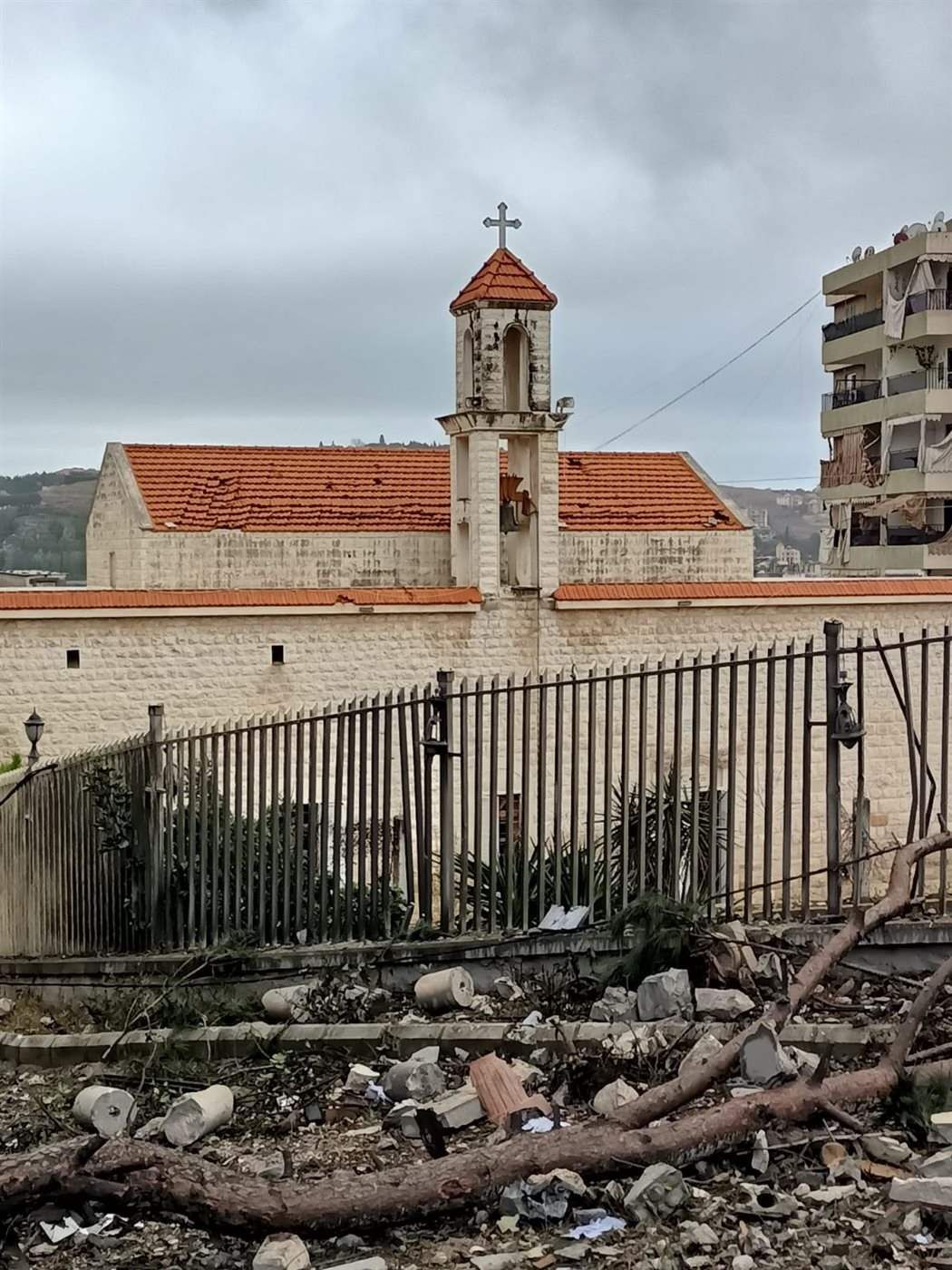 والى منطقة الحدث في الضاحية الجنوبية لبيروت، تضررت كنيسة سيدة النجاة، من جراء غارات إسرائيلية استهدفت مناطق مجاورة لها.