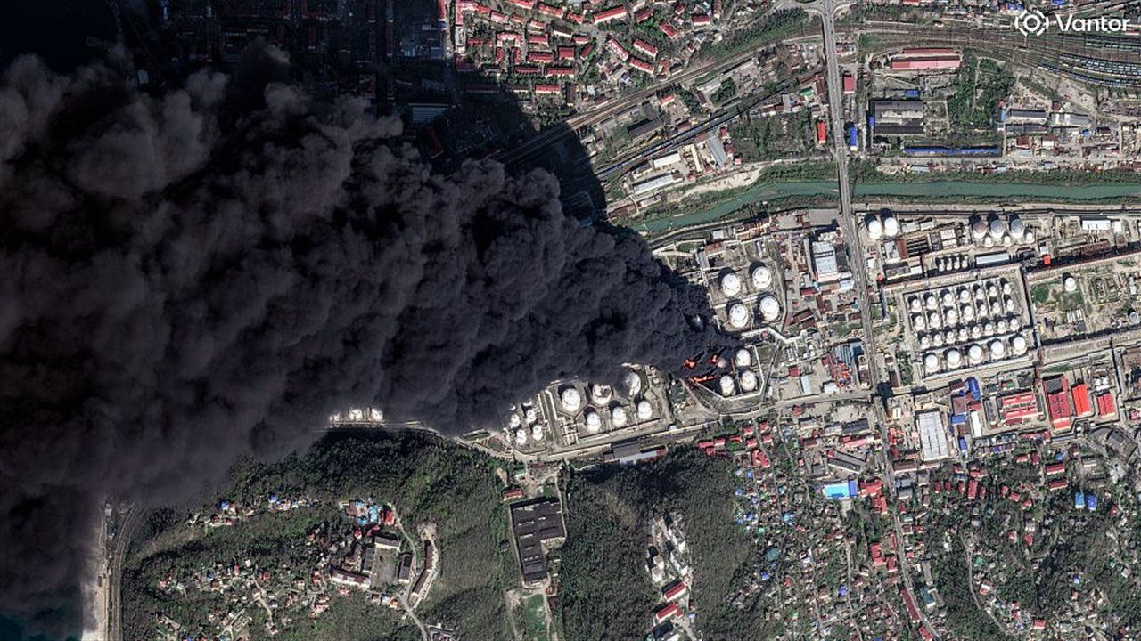 استُهدفت كييف منشآت نفطية في مدينة توابسي الجنوبية يوم الإثنين، ما أدى إلى اندلاع حريق هائل وتصاعد أعمدة كثيفة من الدخان الأسود في سماء المدينة الساحلية.