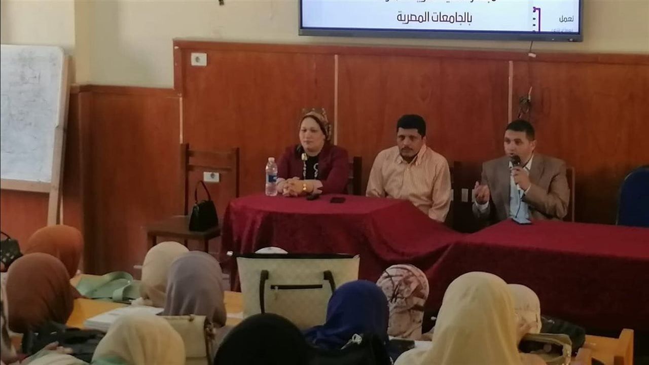 جاء ذلك تحت إشراف الدكتور أبو الحسن عبد الموجود نائب رئيس الجامعة لشؤون خدمة المجتمع وتنمية البيئة، والدكتور أسامة محمود قرني عميد كلية التربية، الدكتور أحمد فكري بهنساوي وكيل الكلية لشؤون خدمة المجتمع وتنمية البيئة، وحاضر في الندوة الدكتور جمعة سعيد تهامي، أستاذ أصول التربية ومدير مركز تنمية الموارد البشرية بالجامعة.