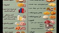 الخبز الأسمر، الأرز، البطاطس، اللحوم الحمراء، الكبدة، بعض أنواع الأجبان المطبوخة، وفواكه محددة مثل التمر والعنب.