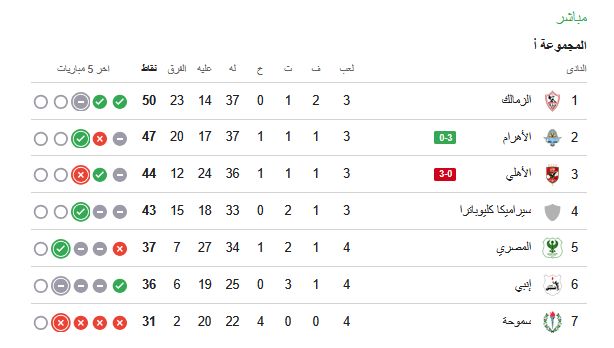 ترتيب الدوري المصري.. جدول ترتيب الدوري المصري الممتاز بعد فوز بيراميدز على الأهلي