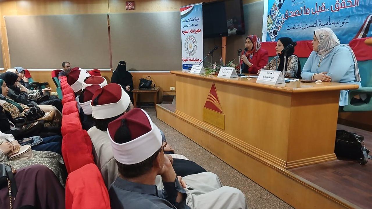 شهدت مكتبة مصر العامة بدمنهور انطلاق ندوة تثقيفية تحت شعار "اتحقق قبل ما تصدق"، والتى نظمتها إدارة إعلام البحيرة، بهدف بناء وعي مجتمعي قوي يواجه الشائعات ويحد من تأثيرها على الأفراد والمؤسسات، وذلك في إطار توجيهات الدكتورة جاكلين عازر محافظ البحيرة، بتعزيز الوعي المجتمعي ومواجهة حملات التضليل والشائعات.