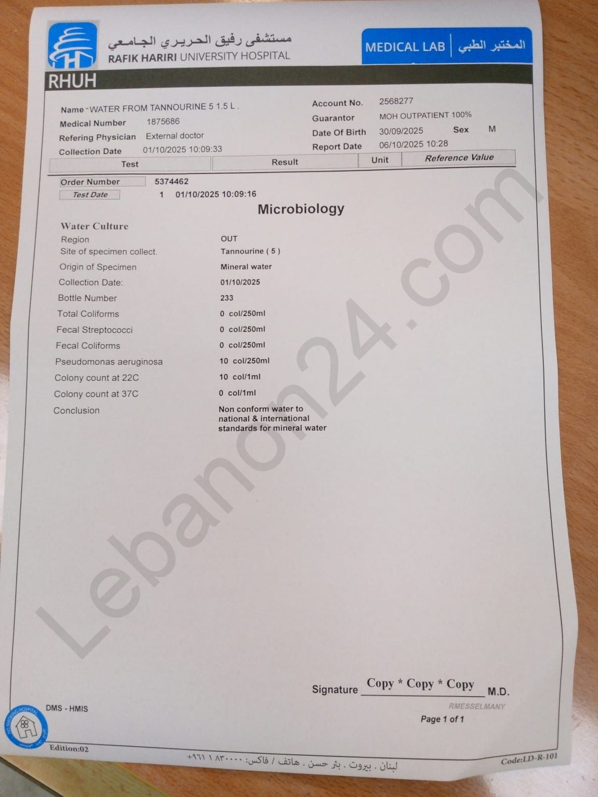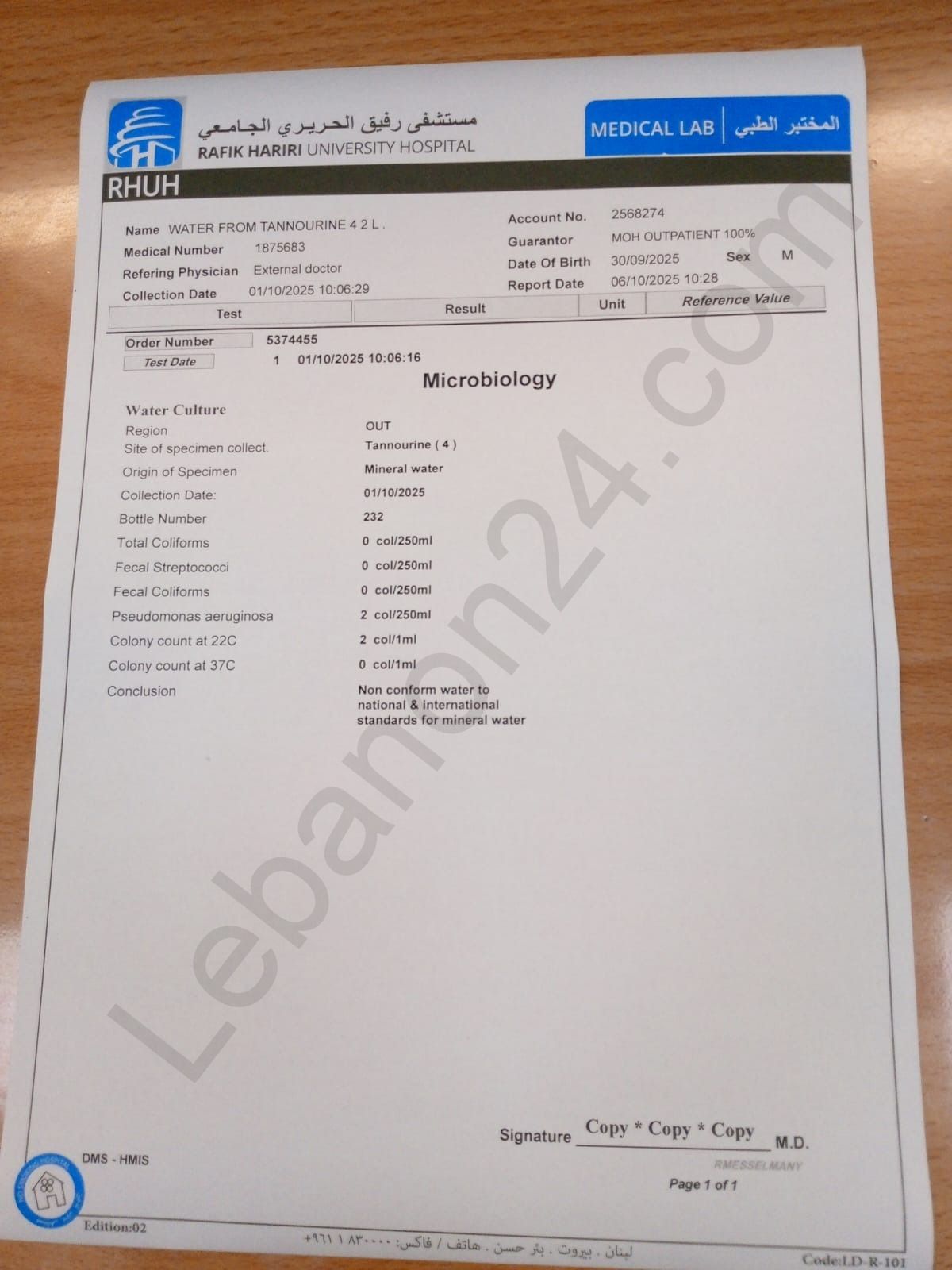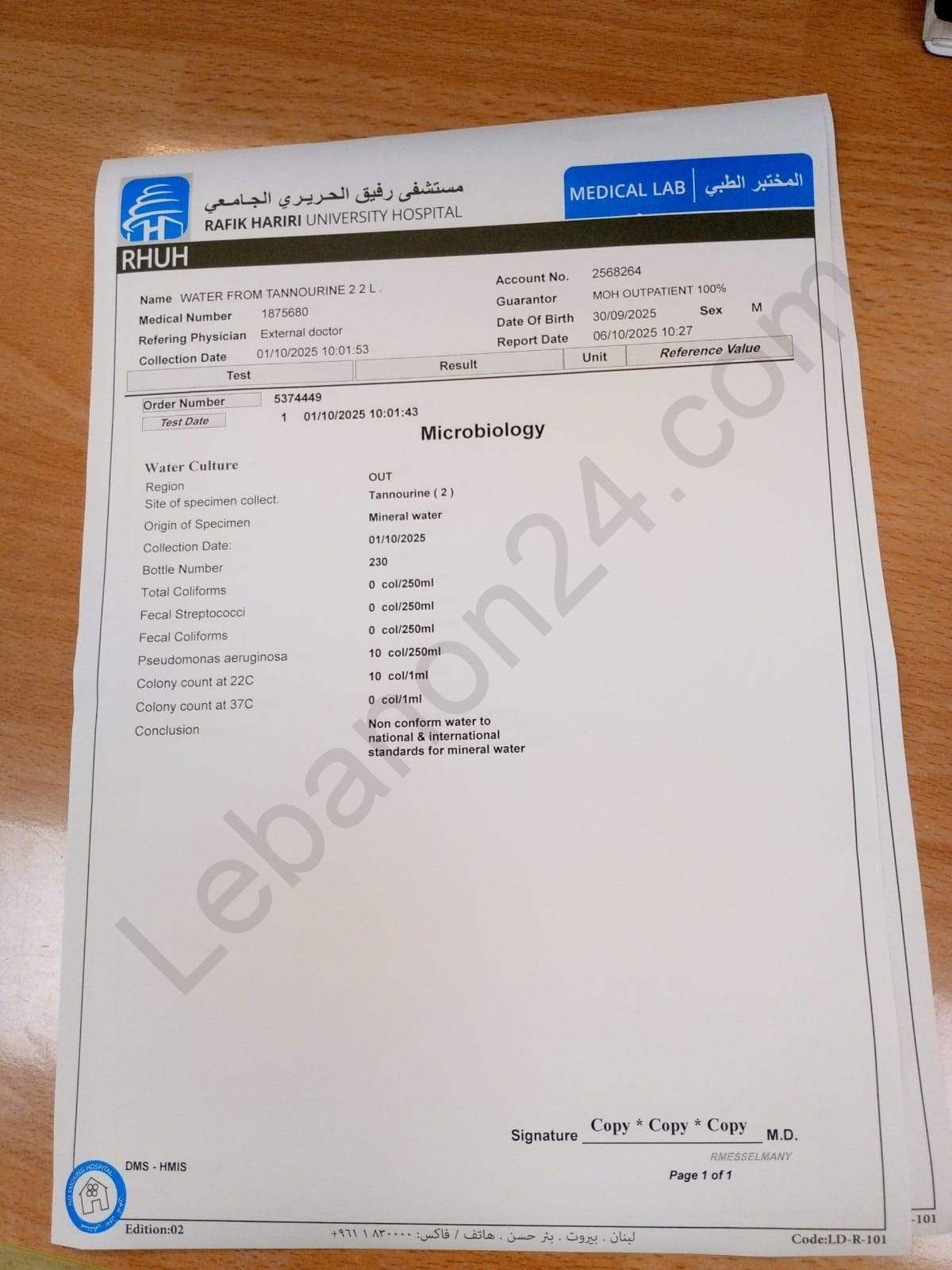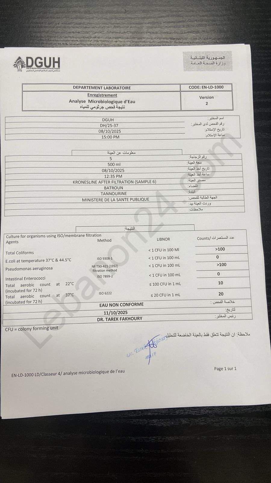 صور لنتائج فحوصات مياه "تنورين".. شاهدوها