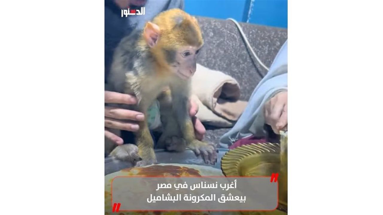 تداول رواد مواقع التواصل الاجتماعي مقطع فيديو طريف، يُظهر نسناس صغير يعيش مع إحدى الأسر المصرية، في لحظة غير معتادة وهو يتناول المكرونة بالبشاميل بشهية كبيرة، في مشهد أثار دهشة المتابعين.