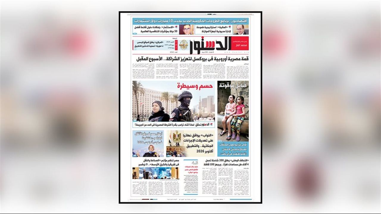 تصدر جريدة «الدستور» في عددها الصادر غدًا الجمعة سلسلة من الموضوعات الخاصة التي تتناول أبرز الملفات الداخلية والخارجية.