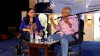 أدار الحوار معها د. محمد أمين عبدالصمد المشرف على التراث الشعبي بالمركز، بحضور جمهور المعرض، في حوار مفتوح تناول صحافة الطفل والمجلات الموجهة للناشئين.
