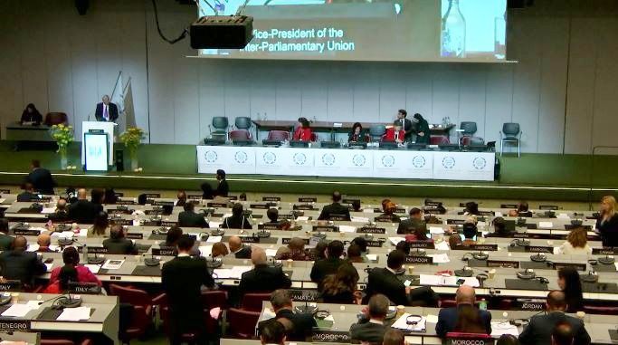 شارك المستشار الدكتور حنفي جبالي رئيس مجلس النواب في أعمال الجمعية العامة الـ 151 للاتحاد البرلماني الدولي، والمُنعقدة في جنيف، حيث ألقى سيادته كلمة بشأن موضوع المناقشة العامة للمؤتمر" الالتزام بالمعايير الإنسانية ودعم العمل الإنساني في أوقات الأزمات"، جاء أبرز ما فيها على النحو التالي: