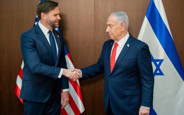 وأعرب فانس، خلال لقاء مع رئيس الوزراء الإسرائيلي بنيامين نتنياهو عن تحمسه للعمل معًا على خطة سلام غزة، وقال:" أمامنا مهمة شاقة للغاية، وهي نزع سلاح حماس، وإعادة إعمار غزة، وتحسين حياة سكانها، وكذلك ضمان ألا تشكل حماس تهديدًا لأصدقائنا في إسرائيل".