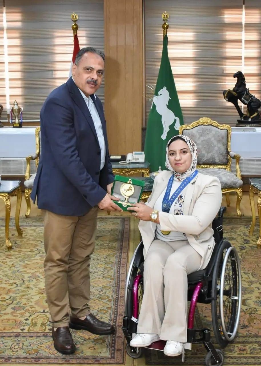 ومن جانبها أعربت لاعبة رفع الأثقال البارالمبي عن سعادتها لإستقبال المحافظ لها اليوم وتكريمها بإهدائها شعار المحافظة وشهاده تقدير ليمثل لها قوة دفع حقيقية لمواصلة الانتصارات والفوز بالميداليات الذهبية ورفع اسم مصر عالياً.