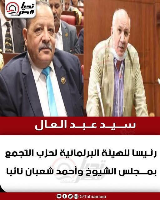 سيد عبد العال رئيسا للهيئة البرلمانية لحزب التجمع بمجلس الشيوخ وأحمد شعبان نائبا