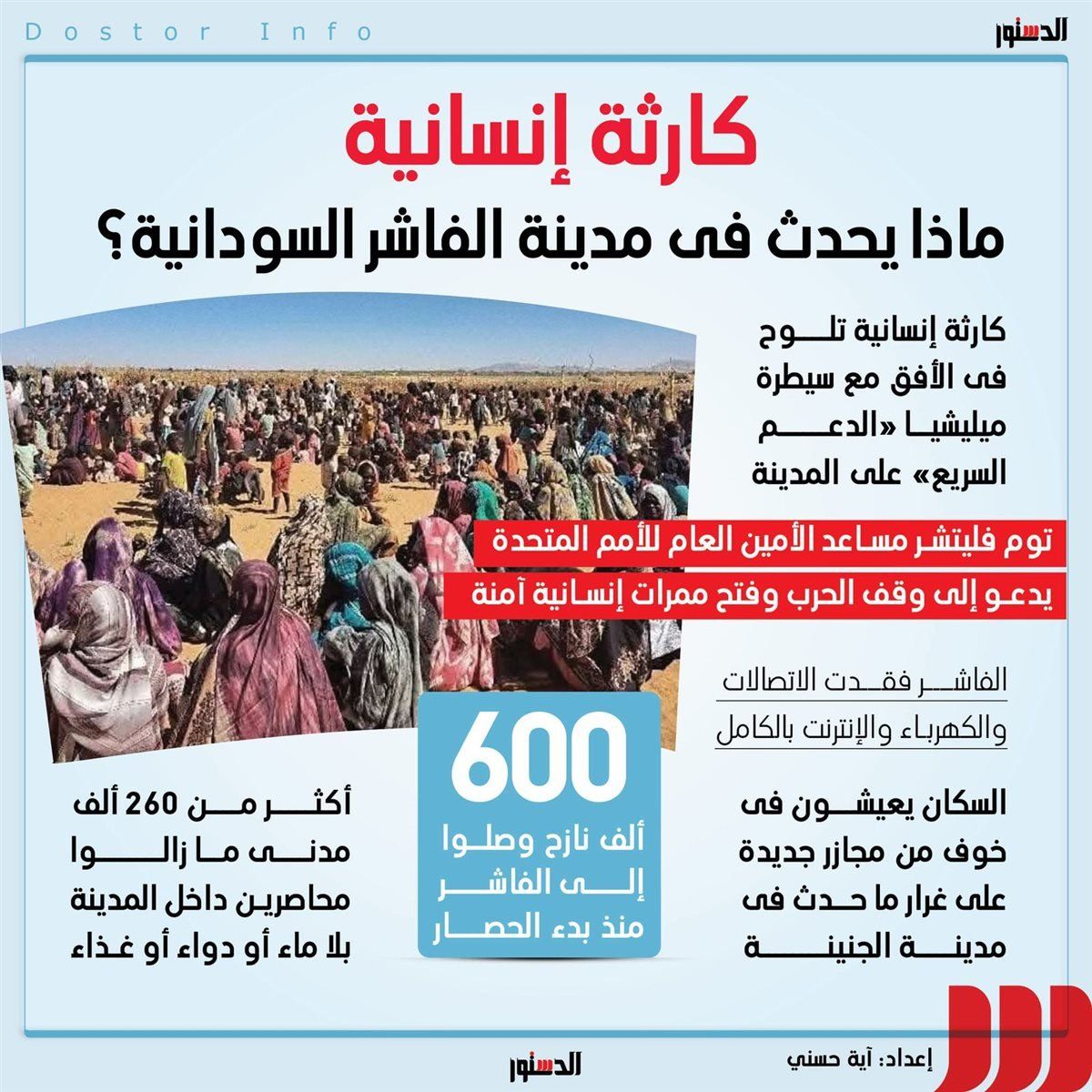 تشهد مدينة الفاشر في شمال دارفور وضعًا إنسانيًا متدهورًا بعد إعلان ميليشيا الدعم السريع سيطرتها الكاملة عليها، عقب أكثر من عام من الحصار والقتال العشوائي مع القوات الموالية للجيش السوداني.