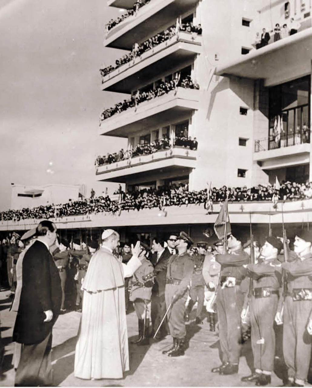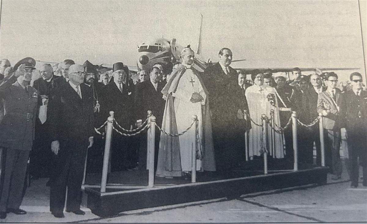 عند الثامنة و17 دقيقة صباحًا، تاريخ 12 كانون الاول 1964، حيث كانت السماء ممطرة وعاصفة، لامست طائرة بوينغ 707 مدرج مطار بيروت الدولي. على متنها البابا بولس السادس، القادم من فيوميتشينو قرب روما، في زيارة غير رسمية، ومعه الفريق البابوي وصحافيون ومصوّرون. كانت زيارة "ترانزيت" بنكهة احتفال وطني: بروتوكول مختصر، ومشهد جماهيري هادر، ولبنان على موعد سريع مع لحظات ستستقر طويلًا في ذاكرته.