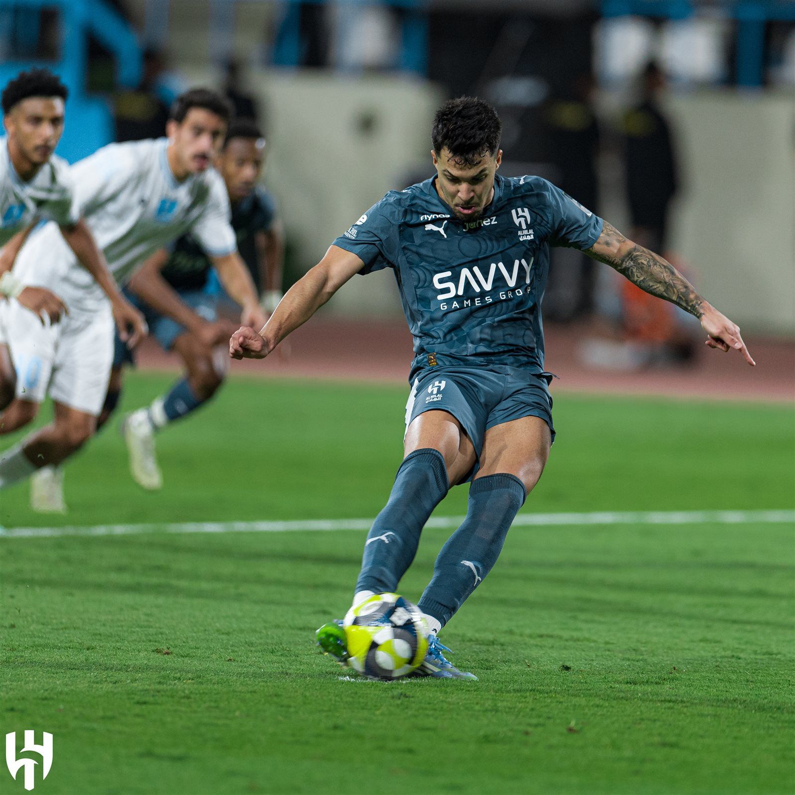 وفي الدقيقة 48 وقبل نهاية الشوط الأول حصل الهلال على ركلة جزاء وسجلها ماركوس ليوناردو بنجاح.