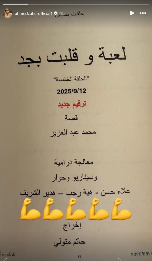 وشارك الفنان أحمد زاهر، صورة لاسكريبت مسلسله الجديد لعبة وقلبت بجد، وفقا لما رصده موقع تحيا مصر، عبر استوري صفحته الرسمية على موقع التواصل الاجتماعي إنستجرام، حيث من المقرر أن يتم عرض العمل الدرامي في موسم الاوف سيزون.