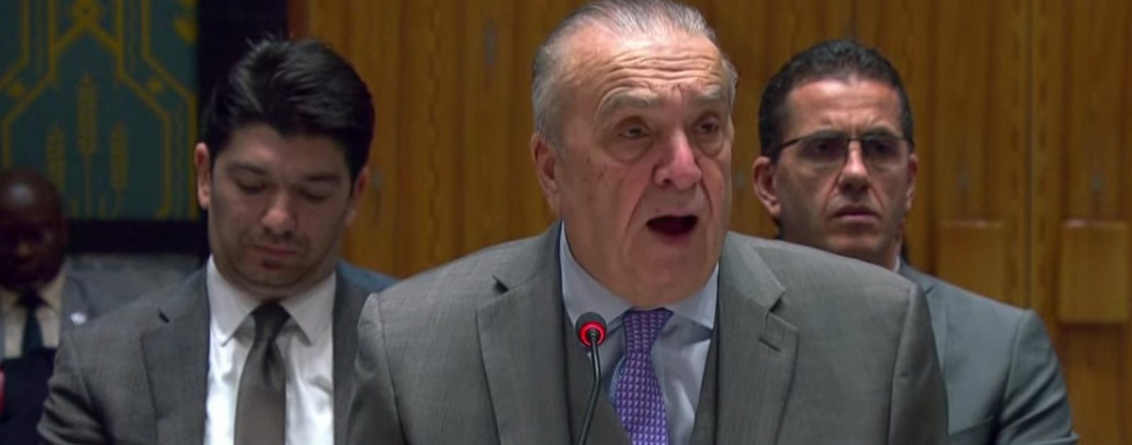 المندوب الجزائري لدى الأمم المتحدة عمار بن جامع خلال جلسة لمجلس الأمن الدولي