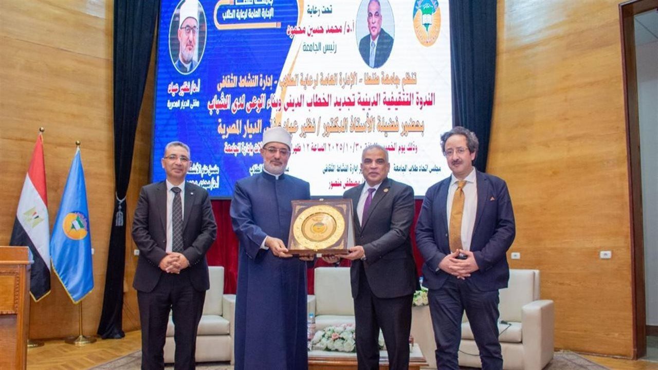 وأوضح خلال كلمته في ندوة "تجديد الخطاب الديني وبناء الوعي لدى الشباب" بجامعة طنطا، أن التجديد الحقيقي لا يعني التنصل من ثوابت الدين أو الجمود، بل يقوم على الفهم الرشيد والقراءة الواعية التي توازن بين الثابت والمتغير، وأشار إلى أن أحد أبرز التحديات التي تواجه الخطاب الديني هي تصدي غير المتخصصين لشؤون الدين دون تأهيل علمي، مما يؤدي إلى تشويه المفاهيم، مؤكدًا أن الخطاب الديني الرشيد هو الذي يصل إلى الناس جميعًا بأدوات العصر ويعبر عن روح الدين ومقاصده دون هدم لأصوله.