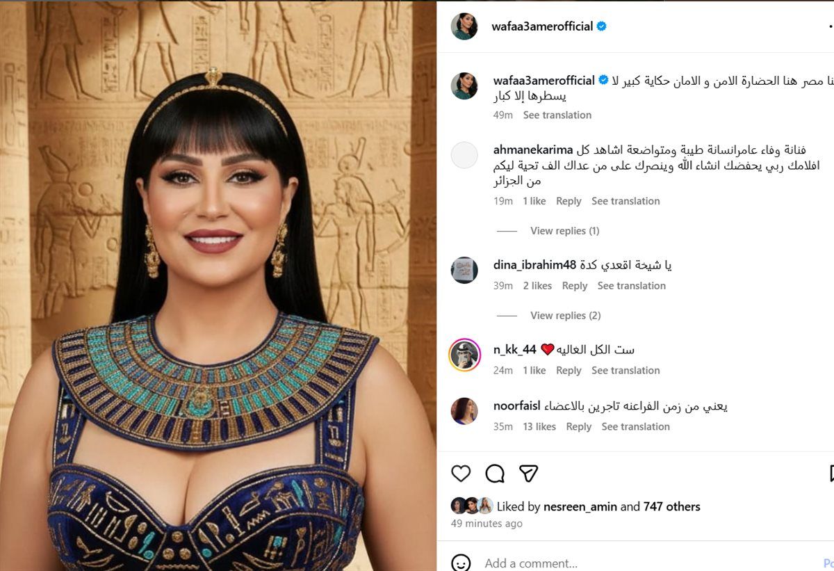 شاركت الفنانة وفاء عامر جمهورها عبر حسابها الرسمي على موقع إنستجرام مجموعة من الصور لها بالزي الفرعوني، احتفالًا بافتتاح المتحف المصري الكبير، في مشهد يجسد روح الحضارة المصرية العريقة.