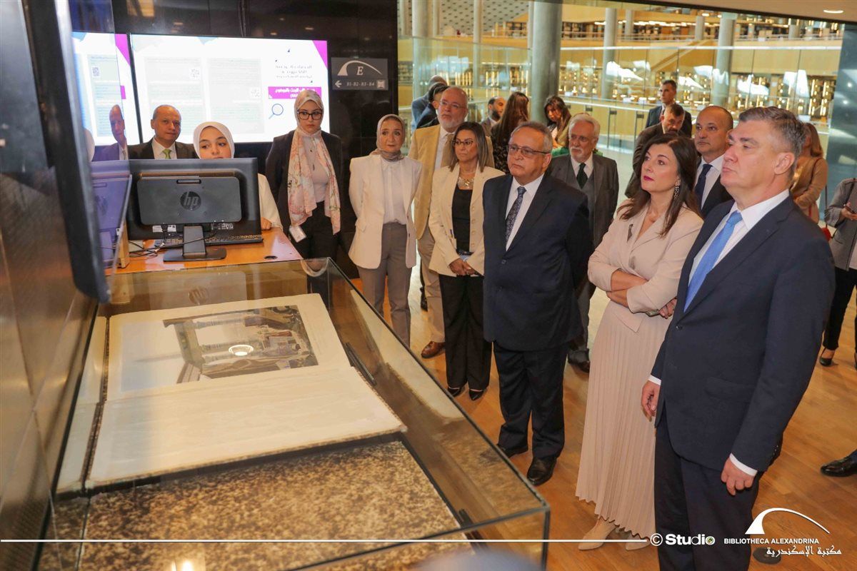 وكان في استقبال الرئيس الكرواتي والوفد المرافق، الدكتور أحمد زايد، مدير مكتبة الإسكندرية، والفريق أحمد خالد حسن سعيد، محافظ الإسكندرية وعدد من قيادات المكتبة.