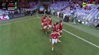 ومع انتصاف الشوط الأول نجح الأهلي في تسجيل الهدف الأول مع ضغط قوي على مرمى سيراميكا لحسم المواجهة.