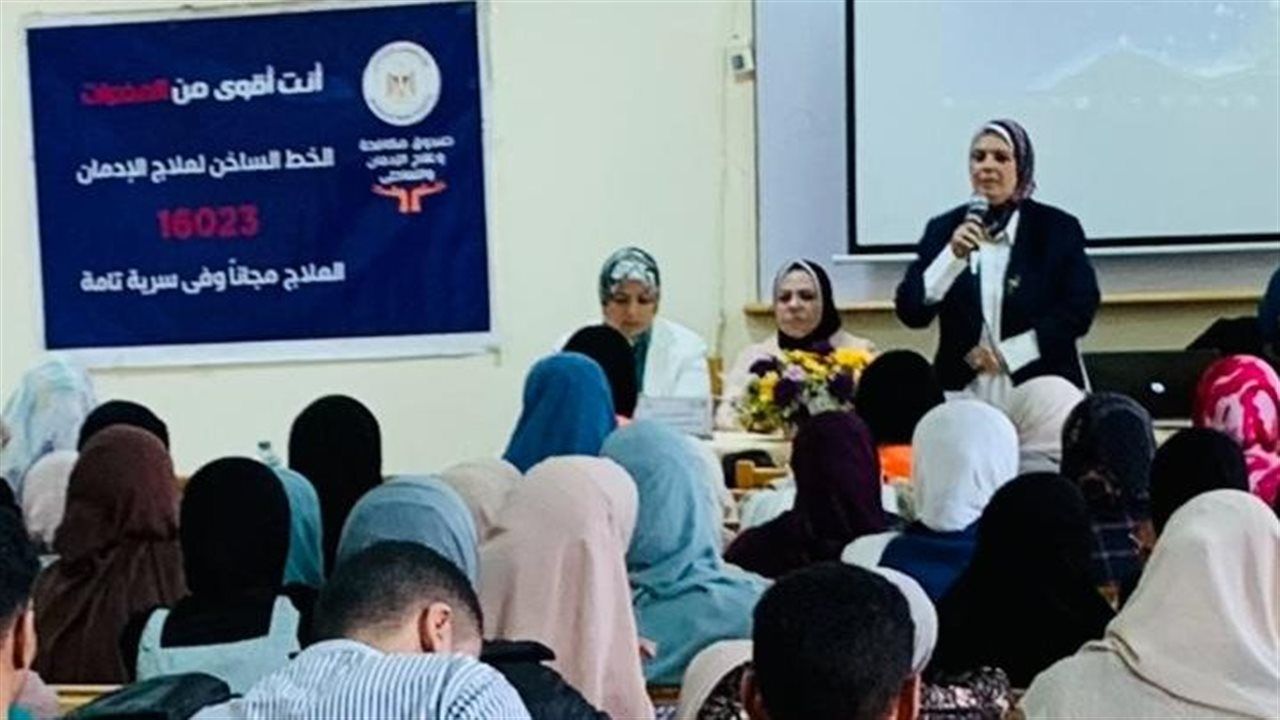 وعقد كلية التمريض بإشراف الدكتورة عبير عبد الفتاح، عميد الكلية، الدكتورة رشا عيسى، وكيل الكلية لشئون خدمة المجتمع وتنمية البيئة، ندوة للتوعية بأهمية المشاركة الإيجابية في العملية الانتخابية.