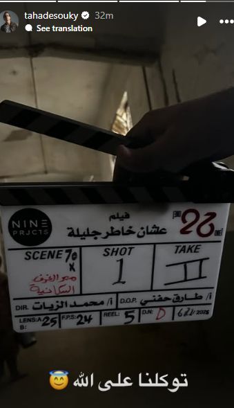 وشارك الفنان طه دسوقي، صورة لكلاكيت فيلم علشان خاطر خليلة، وفقا لما رصده موقع تحيا مصر، وذلك عبر خاصية القصص القصيرة على حسابه الرسمي بمنصة تبادل الصور والفيديوهات إنستجرام، وكتب عليه: توكلنا على الله.