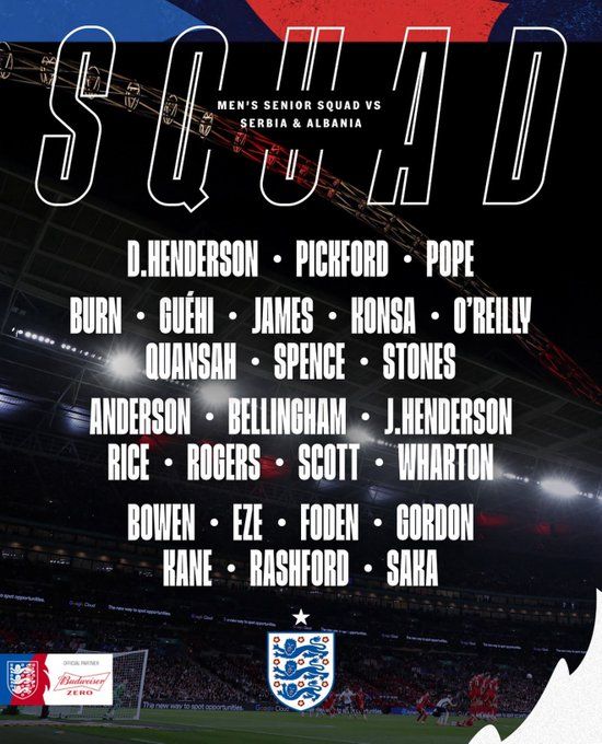 وشهدت القائمة مزيجا من العناصر الشابة والخبرة، حيث استمر الاعتماد على الركائز الأساسية مثل هاري كين، وبوكايو ساكا، وجود بيلينجهام، إلى جانب استدعاء بعض الوجوه الجديدة التي تألقت مؤخرًا مع أنديتها في الدوري الإنجليزي الممتاز.