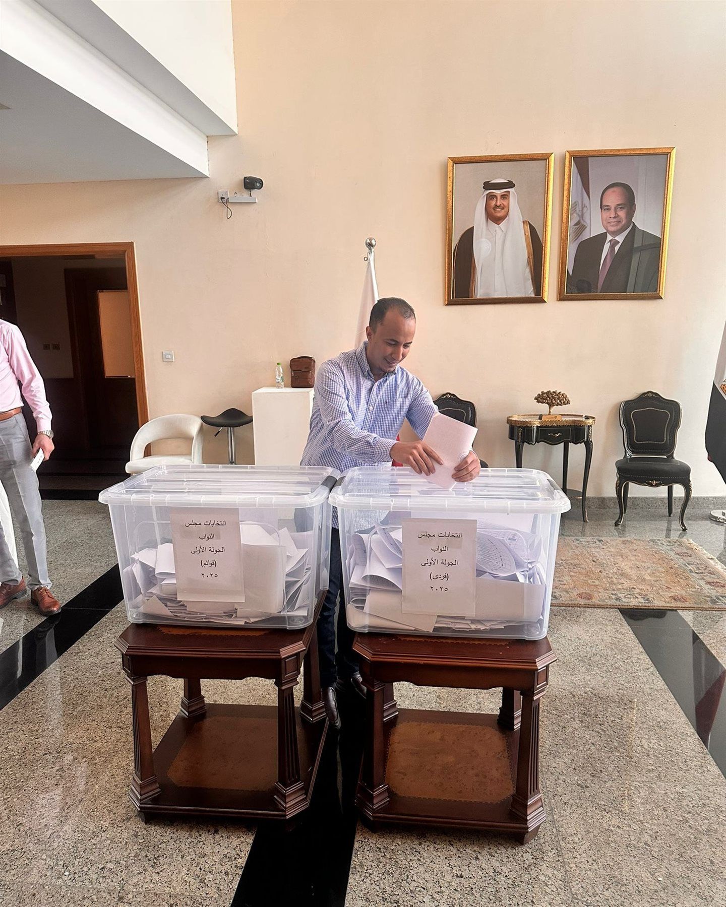 شهدت سفارة مصر في قطر اليوم إقبالاً مميزاً من الناخبين المصريين للإدلاء بأصواتهم في اليوم الثاني من انتخابات مجلس النواب، حيث توافد المواطنون المصريون على السفارة حاملين باقات الورود، معبرين عن فرحتهم ومشاركتهم في العرس الديمقراطي، وسط أجواء من الانتماء الوطني والحماس للمساهمة في صناعة مستقبل وطنهم.