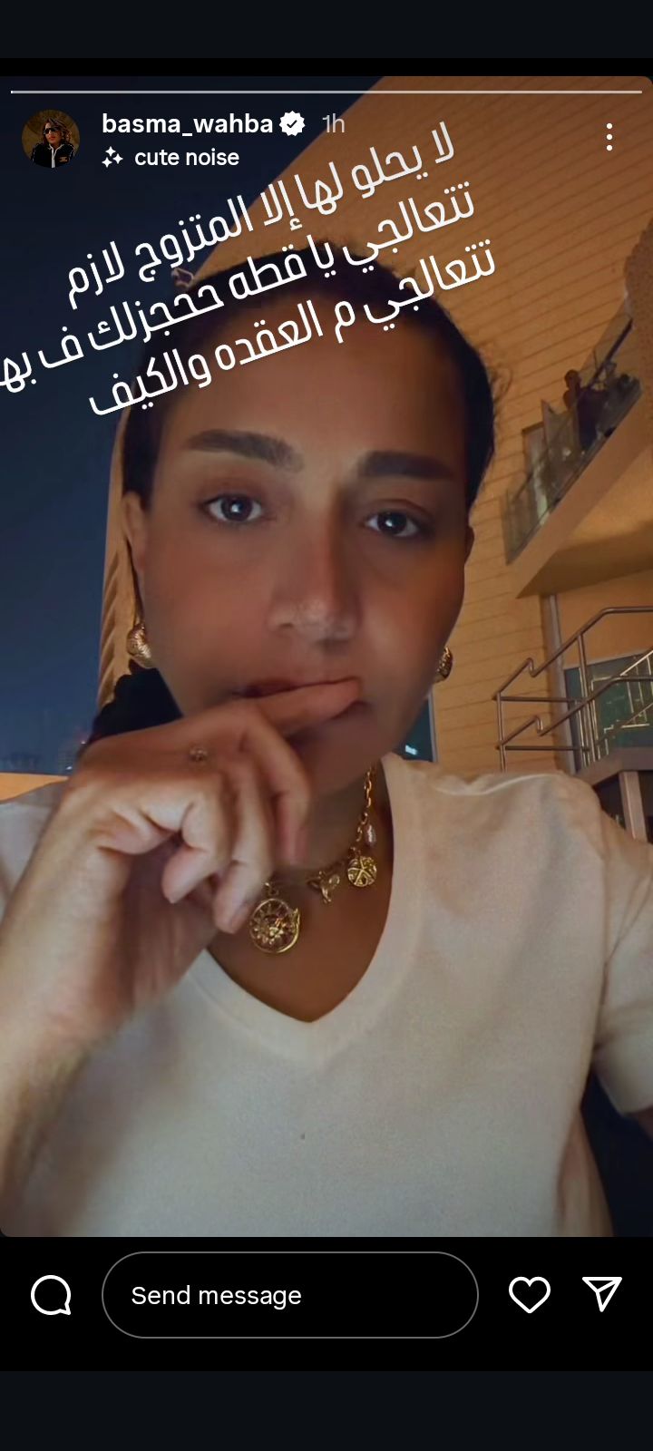 وقالت بسمة وهبة في فيديو رصده موقع تحيا مصر على حسابها الرسمي بموقع تبادل الصور والفيديوهات انستجرام، موجهة حديثها إلى أن الرفاعي، الزوجة السابقة لـ كريم محمود عبد العزيز: متتقرجيش على الفيلم مرتين وتفتكري النهاية هتكون مختلفة، المفروض تكوني عارفة أن الرجعة كان ليها مصلحة وانتي عارفة اي المصلحة وخلصت ومعلش في ستات مقرفة مبتحبش غير الحاجة اللي مش بتاعتها مبتحبش الا الراجل اللي مش بتاعها واللي متجوز.