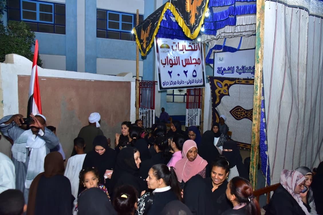 كما شهدت مقار اللجان الانتخابية بمركز دراو، تكثفيات أمنية مشدده لفرض السيطرة الأمنية وتأمين الناخبين أثناء توافدهم علي اللجان.