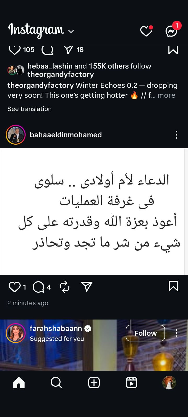 وكتب بهاء الدين محمد على حسابه الرسمي بموقع تبادل الصور والفيديوهات، في منشور رصده موقع تحيا مصر: "الدعاء لأم اولادي، سلوى في غرفة العمليات، أعوذ بعزة الله وقدرته على كل شيء من شر ما تجد وتحاذر.