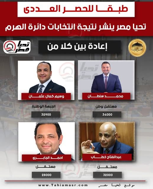 إعادة بين 4 مرشحين بدائرة الهرم بعد منافسة قوية في انتخابات النواب 2025