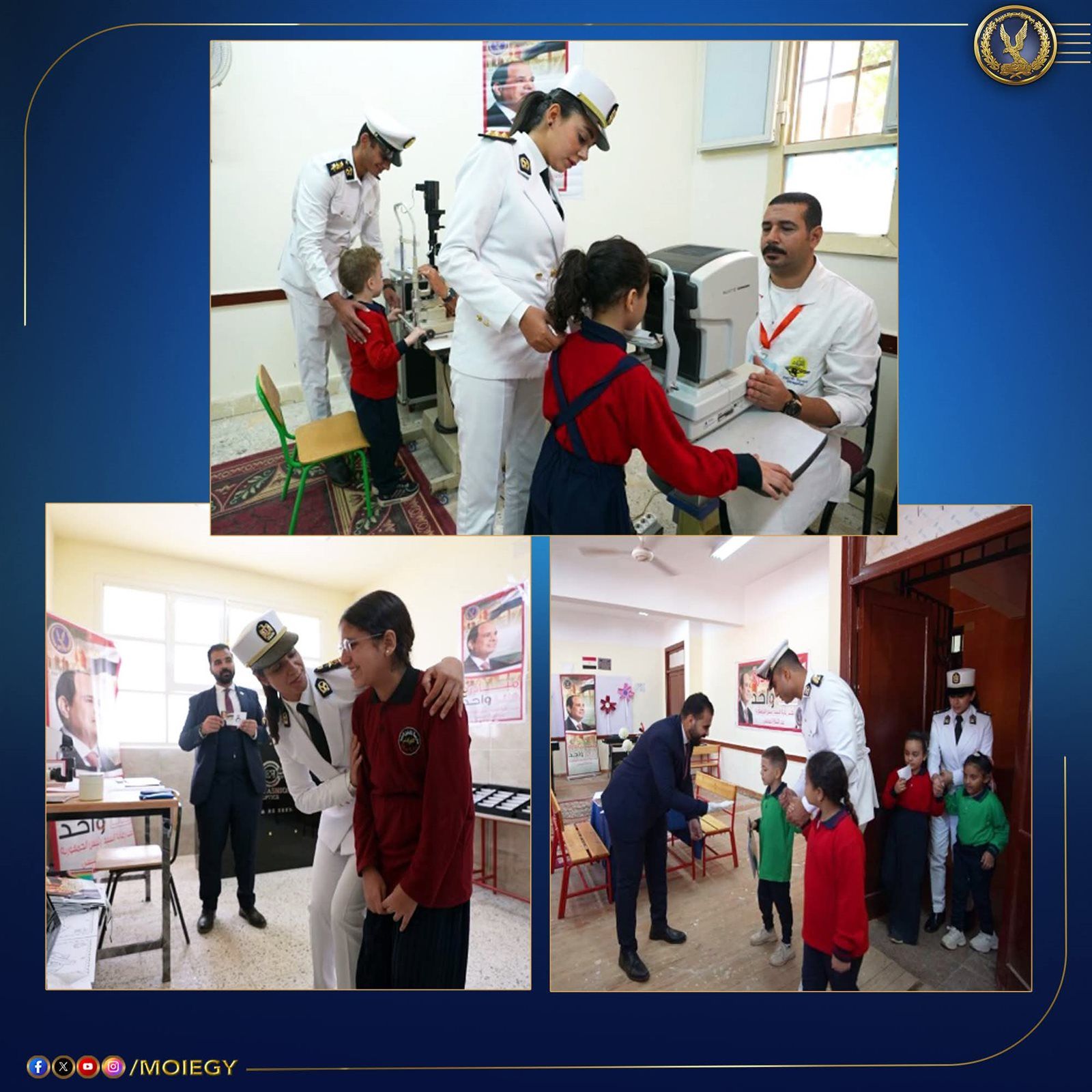 تحت رعاية رئيس الجمهورية، أطلقت وزارة الداخلية مبادرة "سلامة عيونك" ضمن مبادرة "كلنا واحد"، بالتعاون مع إحدى شركات البصريات وإحدى المستشفيات، بهدف إعداد قوافل طبية متخصصة للكشف على أمراض العيون لدى طلاب المدارس بالمناطق الأكثر احتياجًا.