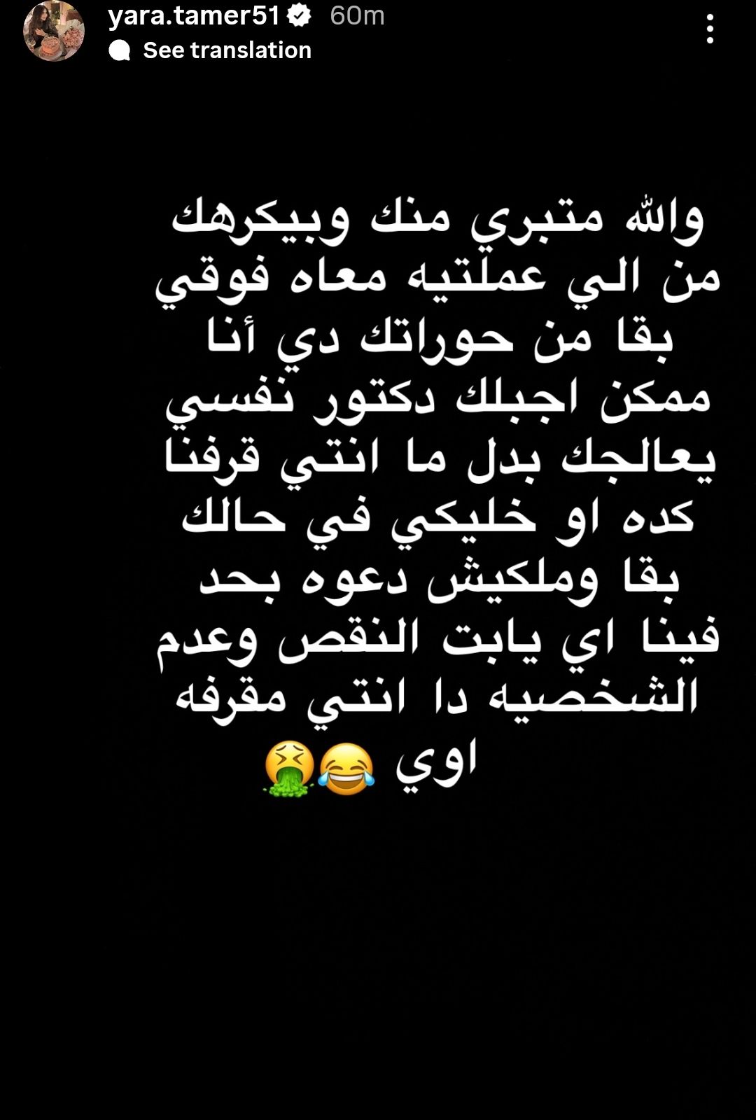 يارا تامر ترد على شقيقة مسلم: بيكرهك ومتبري منك