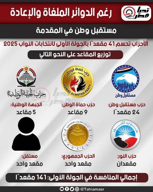 وفيما يلي، نرصد حصص الأحزاب التي حُسمت بالجولة الأولى لـ انتخابات النواب بالأرقام: