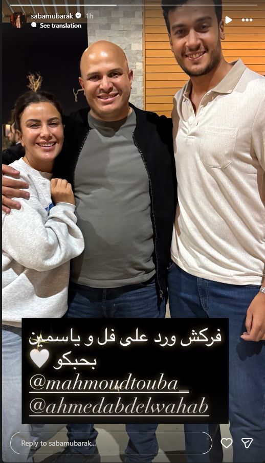 وشاركت الفنانة صبا مبارك، صورة تجمعها بفريق عمل مسلسل ورد على فل وياسمين، وفقا لما رصده موقع تحيا مصر، وذلك عبر استوري صفحتها الرسمية على موقع التواصل الاجتماعي إنستجرام، وعلقت عليها: فركش مسلسل ورد على فل وياسمين.
